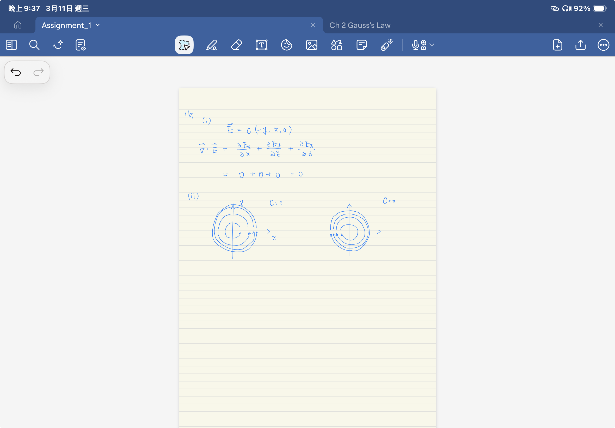 第二題我有點疑惑,散度定理的證明印象中其實只要把div dv=\vec{ds}這件事證完就好了,不知道教授是不是在規定我們一定要用切片的角度去考慮