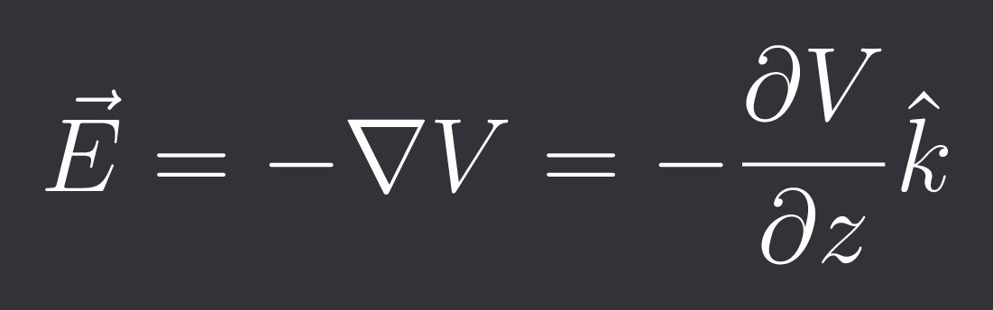 應該是 $$\vec{E}=-\nabla V=-\frac{\partial V}{\partial z}\hat{k}$$